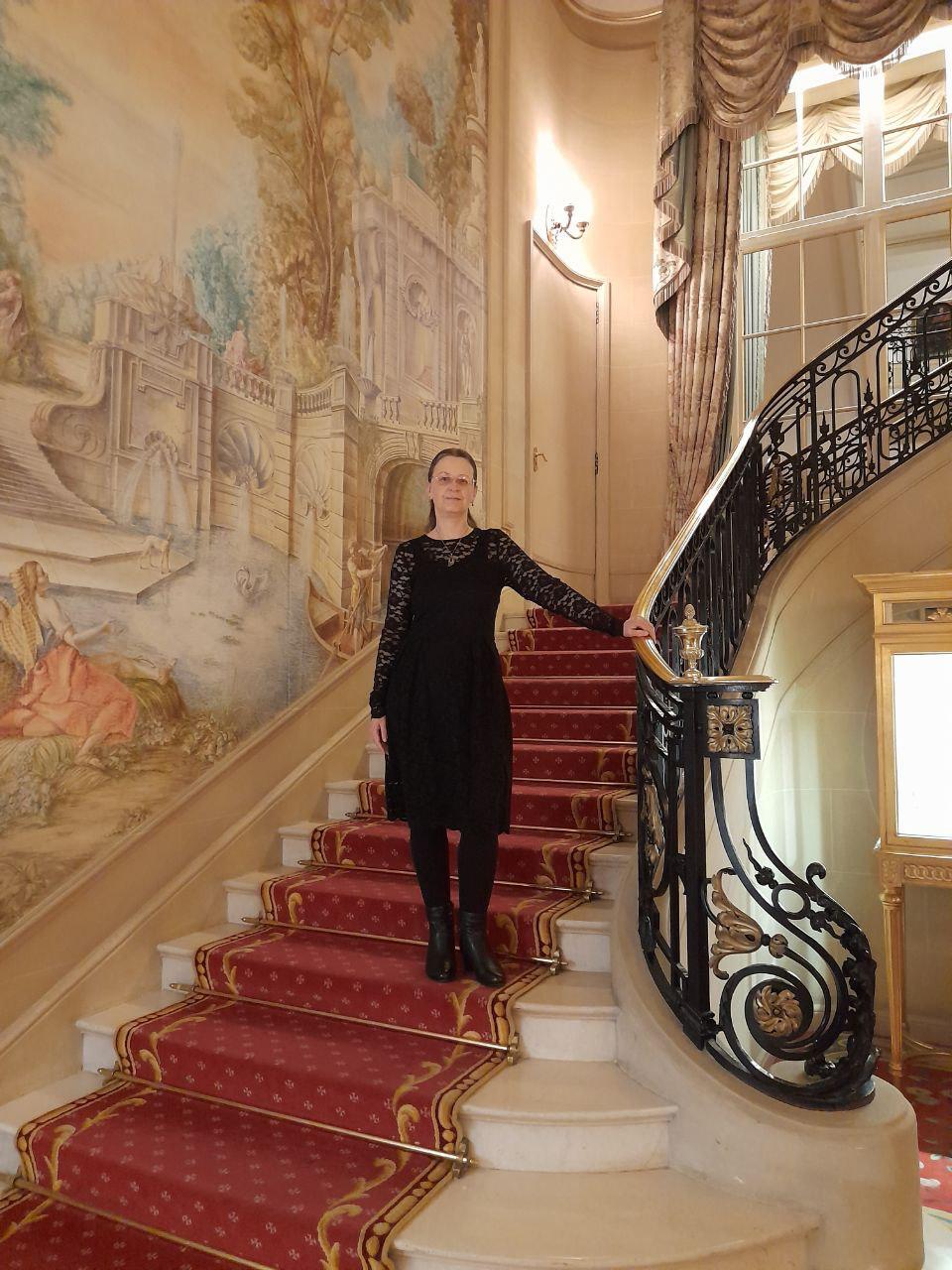 Die Autorin auf der Treppe im Vestibül