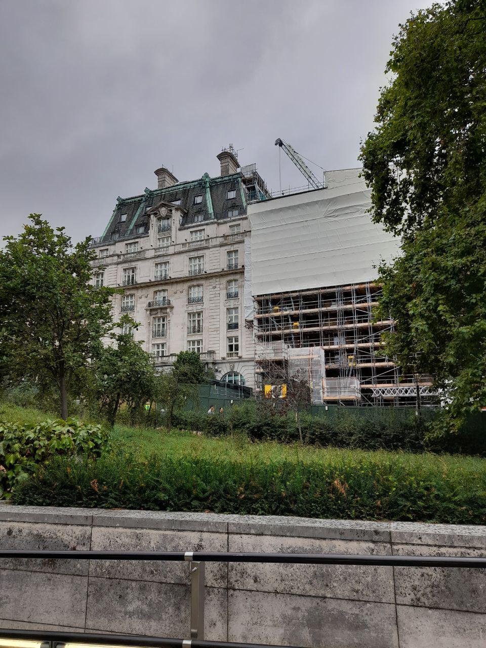 Der Neubau an der Rückseite des Ritz vom Green Park aus gesehen