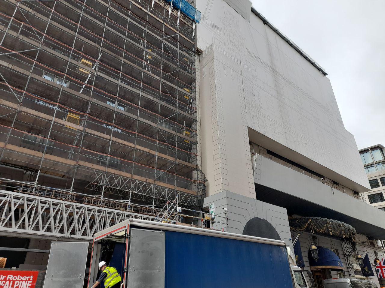 Die Baustelle von der Arlington Street, rechts unten der Eingang des Ritz